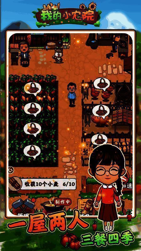 我的小农院是一款玩法不受限制的模拟趣味小游戏,游戏玩法内容设定极为精彩。玩家能随时经营自己的小农场,只要悉心照料,到时间就能收获颇丰。游戏有怀旧风格画面,能唤起童年记忆。