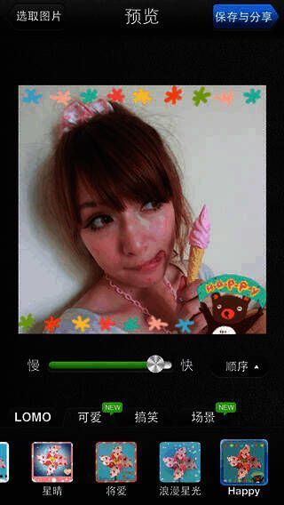 3、内置15种超实用的LOMO、可爱特效,为创意增添色彩;