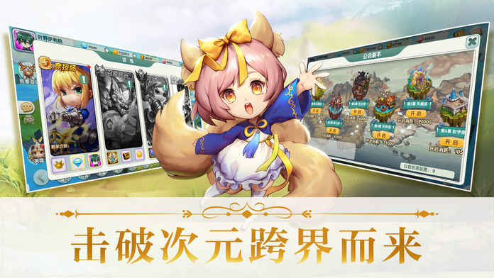 2、【华丽特效,豪华阵容】6V6大战,汇聚民工漫主角,二次元角色召唤具象化,5大精灵法阵助力,科技与魔法、剑与机甲激烈交锋,击破此处方能回归原作世界。
