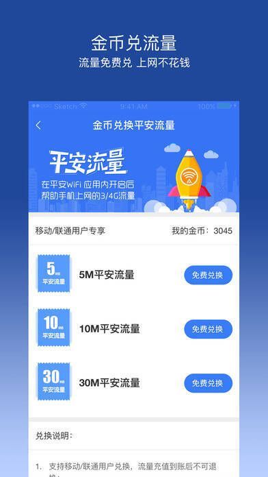 3、金币可当钱花,平安流量、WiFi免费兑换;