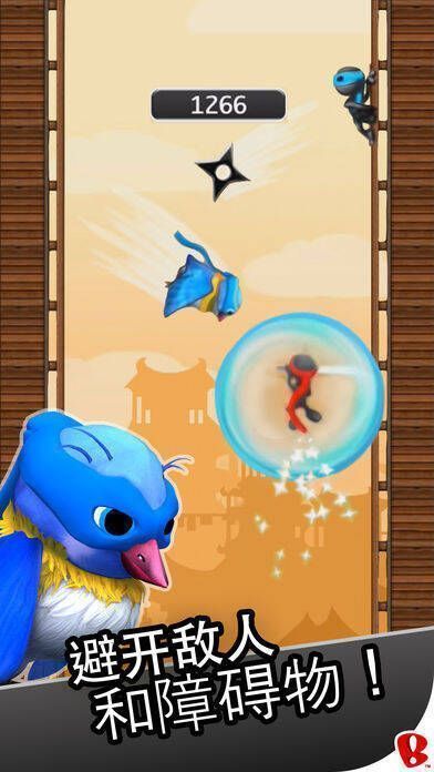 来吧,忍者,奋力攀爬!在这款以忍者为主角的快节奏游戏中,你的目标是尽可能攀登到更高处,同时要躲避邪恶松鼠、俯冲轰炸鸟、敌方忍者、飞镖、炸弹等诸多危险。利用忍者的灵活身手,轻松沿着建筑物一侧向上攀爬。轻点屏幕,让忍者从一面墙跳到另一面墙,在众多敌人中开辟出一条生路。连续击中三个相同的敌人,就能赢取奖励,获得攻击力提升加速道具。还能抓取护盾保护自己,不过要小心障碍物和礁石,务必坚持存活下去。