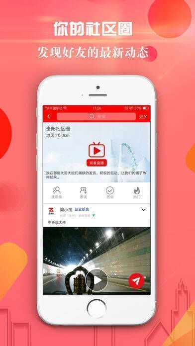 该应用基于地理位置构建社区圈,借助直播技术,实现 7×24 小时不间断的社群直播以及本地化社群互动。