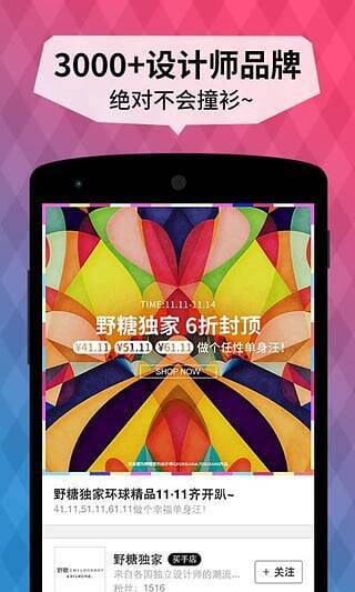 野糖app由主打时尚和设计的电商网站野糖网官方推出,风格定位为“一点甜,一点野”,主要面向90后、对设计有追求的年轻人群体。类似以风格锁定特定人群的快时尚平台,国外有NastyGal、Modcloth,国内有暖岛、喜瓜、ujipin、wowsai等。