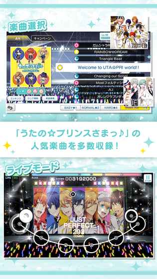 游戏中能与王子们近距离交流,他们还会突然靠近屏幕。有全新手机游戏剧本,与动画和已发售游戏故事不同,更有多首音乐等你来挑战。