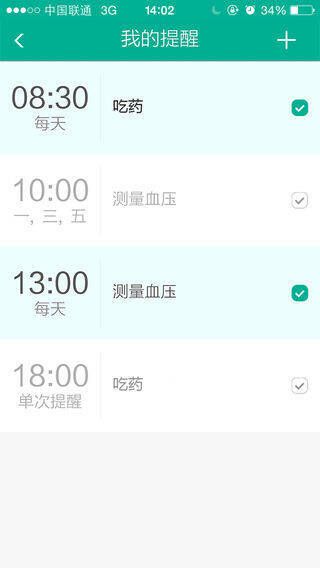 4、闹钟提醒:贴心督促按时吃药、测血压。
