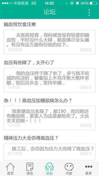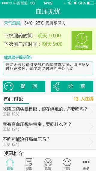 1、病友论坛:与病友探讨高血压治疗与饮食,借鉴彼此好方法。