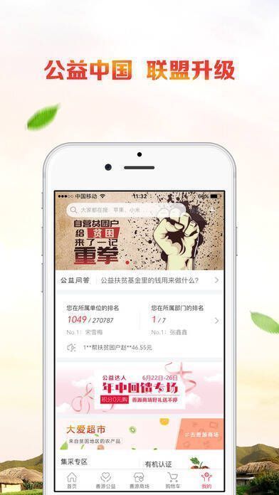 《公益中国》是一款专注于扶贫脱困的公益平台。富有爱心的人士可以通过购买贫困户农产品或参与志愿者活动来奉献爱心,且购买农产品能享受优惠价格。快来下载体验吧!