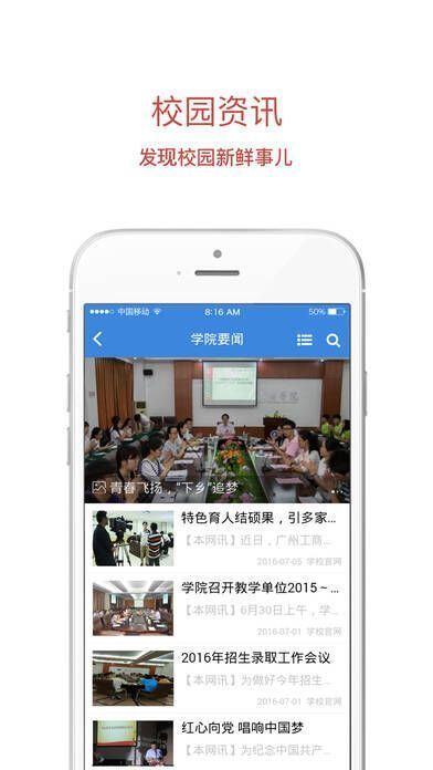 《广州工商学院移动校园》是广州工商学院专门为该校学生定制的校园生活软件。学校师生能借助此软件完成新生报到、教务系统管理查询、教学、校园信息共享以及就业招聘等操作,为校园生活带来便捷。