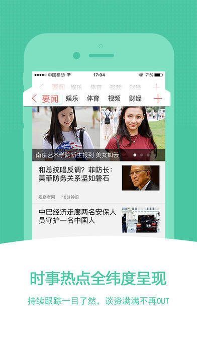 【要闻频道】传统新闻客户端的内容仅在搜悦“要闻频道”呈现。点击要闻进入首页,包含热点要闻、娱乐、社会、体育、财经、美女、视频、图集、科技、国际、涨知识、情感、历史、军事、教育、房产、段子、搏击等多元板块,聚合时事热点,7×24 小时不间断更新,为用户带来新闻现场的资讯内容。重大、突发新闻会及时推送到用户手中,并通过热点专题呈现。