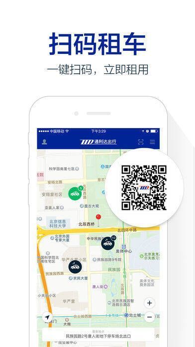 2、用户可利用 LBS 技术定位并预定距离最近的车辆网点,能即时预定,也可提前 15 分钟预定。全程通过手机控制车辆,自助开启自由旅程。到达目的地后,将通利达共享车停在任意合法停车位,再通过 App 完成费用支付即可。