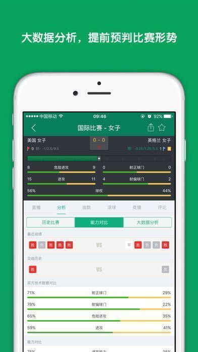 3. 【最准确的分析】通过深度挖掘比赛数据和独有的数据算法,提供独特的赛果分析与统计服务。