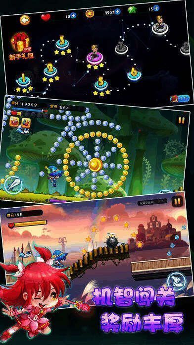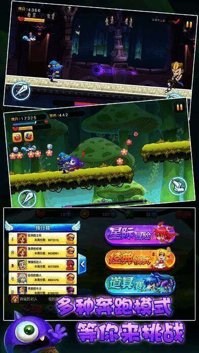 3. 游戏以跑酷加射击为核心玩法,画面清新绚丽,角色Q萌,有百变BOSS和怪物搭配专属剧情,还有多种地形可选。