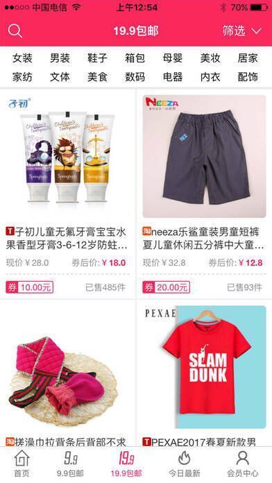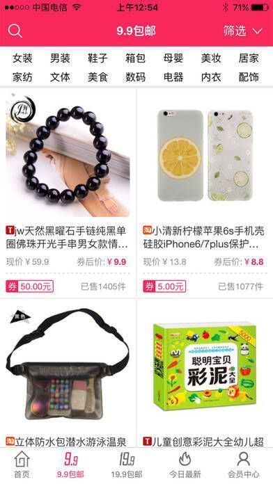 2、【折扣优惠】全场商品低至 1 折包邮,还有九块九包邮专区;