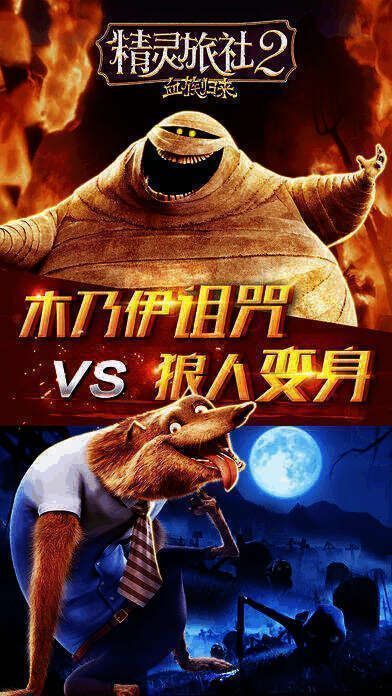 它改编自 3D 动画电影《精灵旅社 2》。在游戏里,玩家要操控主角攻克难关,完成各关卡任务。精灵旅社重新开业,玩家可同时操控多个角色作战,精灵间的混战一触即发。游戏剧情与电影同步,近百个关卡挑战不断,玩家能收集吸血鬼、弗兰肯、狼人等各类精灵鬼怪,培养出最佳魔幻阵容。独特的划线战斗操作,全屏感应极限微操,能让玩家与德古拉一同踏上奇幻之旅。