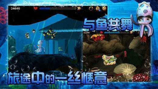 1、轻触屏幕就能轻松操控小墨鱼探索奇妙海洋,捕食可助其快速成长。