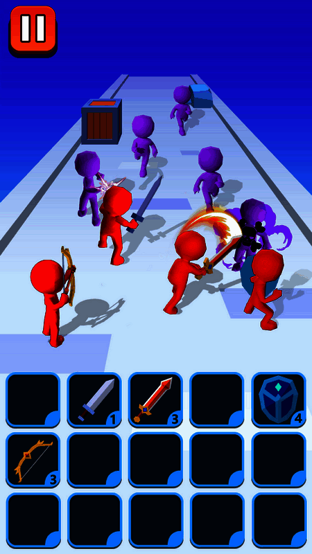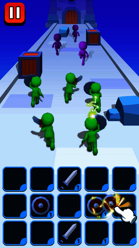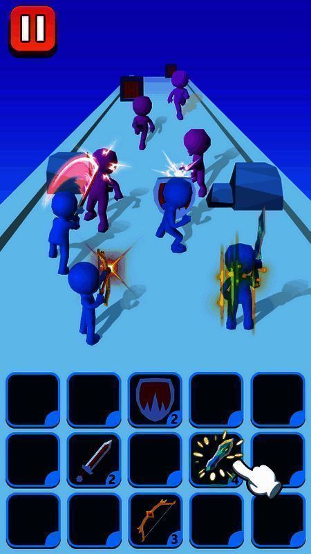 战斗前可消耗资源增强装备。击败敌人会增加新士兵。游戏开始时玩家有三名士兵投入战斗。两个相同角色能组合成更强角色。