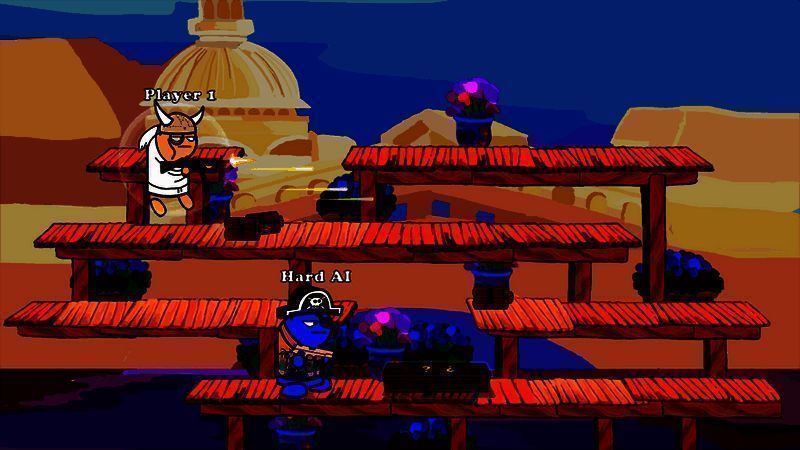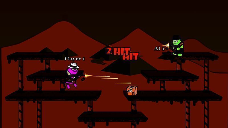 每把武器都具备独特属性,装弹量、后坐力、射击间隔和重量都会对实战效果产生影响。此外,超多皮肤可随意搭配。玩家要通过在平台上跳跃和移动躲避敌人攻击,并尝试将敌人击落平台以获取胜利。