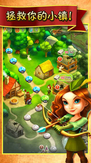 这里有比老式三消游戏更好玩的三项合并消除玩法!加入少女罗宾汉的征途,打败诺丁汉的邪恶领主,拯救镇上居民。