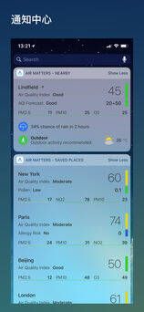 2. 支持查询超 50 个国家、10000 多个监测点空气质量,能按位置显示最近监测点数据。