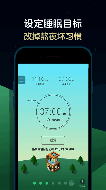 1、SleepTown 睡眠小镇可设定一个具有挑战性的就寝、起床时间目标。