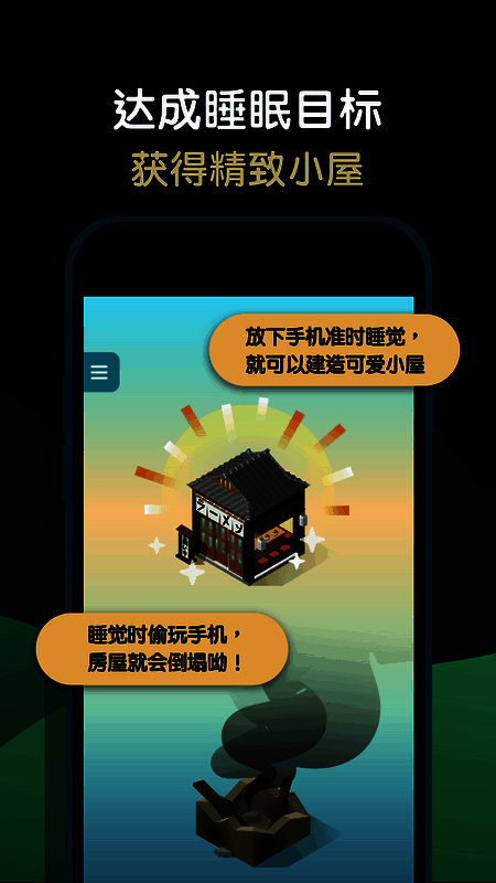 SleepTown 睡眠小镇由全球拥有超 2500 万付费用户的 Forest 开发团队时刻科技打造!白天专注工作与读书,晚上就要放下手机,好好睡觉!SleepTown 是一款帮助你培养规律作息的健康 App。每日达成你设置的就寝、起床目标,就能盖出一栋栋精致可爱的房屋。让准时睡觉变得轻松又有趣,现在就开始睡前放下手机,在睡梦中建造你专属的睡眠小镇吧!