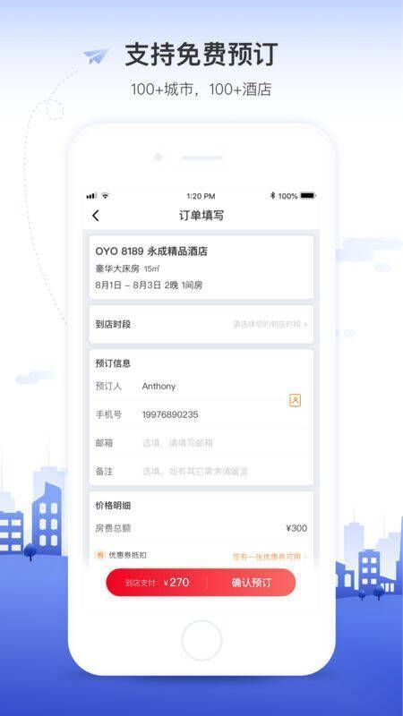 2. 免费预订:只需搜索目的地,就能查看当地所有OYO酒店,无需预付费用,一键轻松订房。