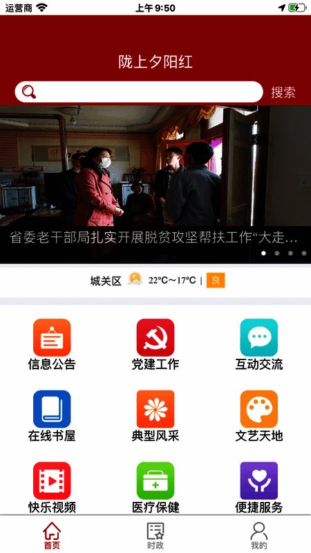 《陇上夕阳红》手机 APP 专为全省离退休干部开发,有信息公告、党建工作、互动交流、在线书屋等九大板块。信息公告发布全省老干部工作重要信息;党建工作展示全省离退休干部党建情况;互动交流是“甘肃离退休干部之家”网络互动平台手机版;在线书屋是内容丰富的移动图书馆等。