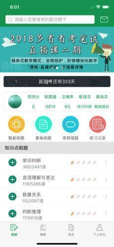 1、8万道题目随你做:题库具有三种模式的刷题功能:第一,智能刷题,随机匹配题目,测试你的短板;第二,套卷刷题,整套真题精做,考前成绩提升更快;第三,高频错题,知识点细化专项化,弥补你的短板;第四,考点刷题,模块知识点专项练习,小知识点精做,模拟练习从点滴开始,考生可针对自身情况有针对性的练习,提高学习效率;
