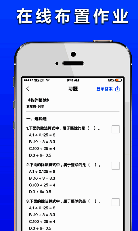 1、在线布置作业:800万优质题库,全面覆盖各科目、各年级、各地域、各教材版本。可根据知识点标签精准匹配选择题型,更换题目。组卷完成一键发送给全班学生及学生家长,轻松送达。