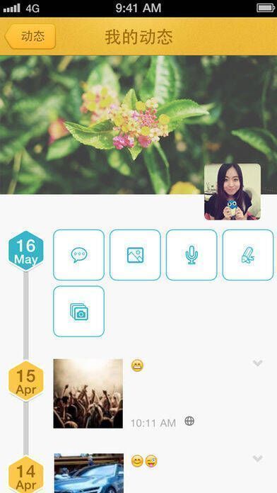 5. 可拍照记录生活,还能上传文字、图片、语音与好友分享生活点滴。