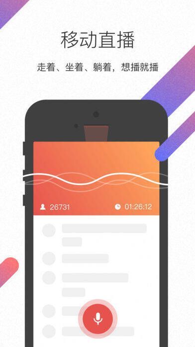 1、【预约直播】动动手指,让对方早知晓你的最新直播动态。2、【智能美颜】智能自助美颜,让你在任何环境都能美美的直播。3、【实时互动】实时获取听众互动,不错过对方的真情告白。4、【一键开播】随时随地开播,吸引千万听众,获取打赏收益。
