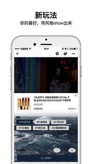 【一键加入购物车】无需跳转页面,在各大移动社交网站上可一键轻松完成购物。
