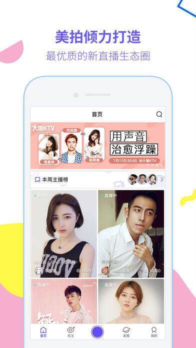 5、明星大咖、网红艺人都在用的有颜直播平台,品质卓越、颜值出众。无论你是酷炫潮流达人,还是热爱美的萌弟软妹,一键开启你的直播新旅程。