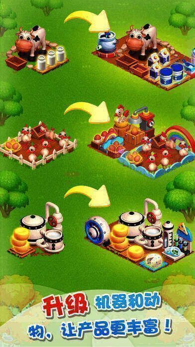 你可以体验最真实的农场生活,进行种植、收获、生产等活动,建造各类机器,饲养可爱的宠物来照料农场。解锁建筑物区域,建造咖啡屋、厨房、烹饪台、锻造室等生活建筑,让农场更加充满生机。开启海岛农场,收集熊猫、骆驼等稀有动物,完成飞机订单和货船业务,每天都有新需求等你解决。