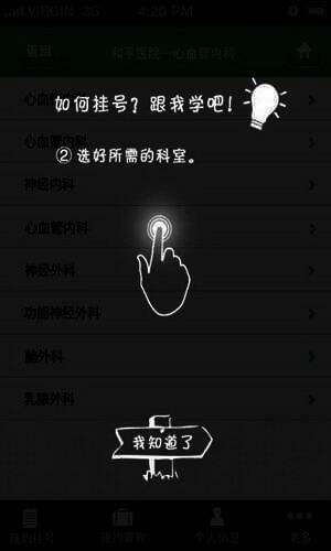 2. 提供预约挂号服务,涵盖北京二级、三级以上公立医院及社会知名医院近200家,提供医院介绍及位置信息,支持按医院、科室、疾病索引快速完成在线预约挂号。
