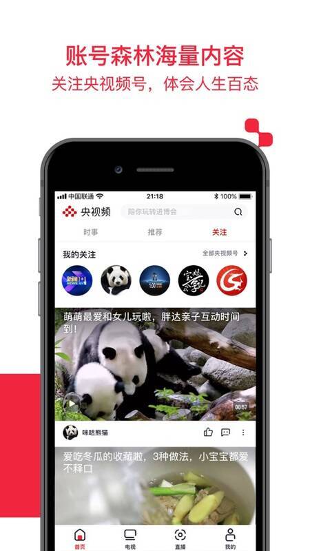 在央视频,用户不仅能看到权威的时事内容,还能欣赏到“泛文体、泛资讯、泛知识”等多元化的精彩视频;这里既有轻松好玩的文娱、动漫、影视等内容,也有知名主播、记者、编导等总台“名人”创作的独家视频;它不仅聚合了《动物世界》《天下足球》《航拍中国》《舌尖》等数不清的新老热播节目,还汇聚了央视及各地方卫视三十余个频道的电视节目直播,更有丰富的赛事和热点事件的实况报道。