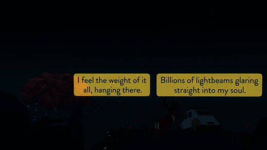 在《远离嘈杂》中,玩家身处挂在悬崖边的废旧汽车内,太阳西下,夜幕临近,没有逃生办法,只能感受自然,了解自身与世界的关联。丰富内容让玩家玩得开心。主角被困车内,车在悬崖边摇摇欲坠,无好的逃生途径,随时可能有危险。玩家可与周边自然环境互动,还能偶尔与路过的鹿交谈,很适合休闲玩家陪伴主角。
