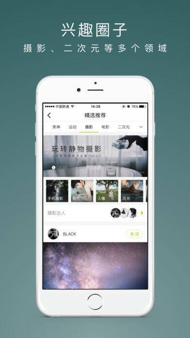 1、摄影爱好者可通过胶片、人像、静物、黑白、极简、手机摄影等标签交流摄影心得。