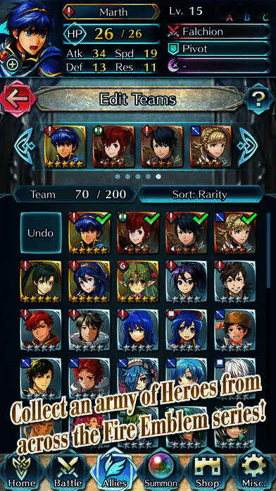2、玩家在游戏中化身为召唤师,可召唤《火焰纹章》系列角色组成队伍战斗。