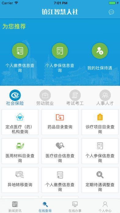 【社保查询】:可查询参保信息,包含参保时间、缴费明细等。