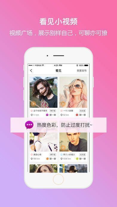 看见小视频:没时间实时视频也没关系,录一段小视频会有更多人关注你。系统会根据你的热度控制找你聊天的人,不用担心被过度打扰。