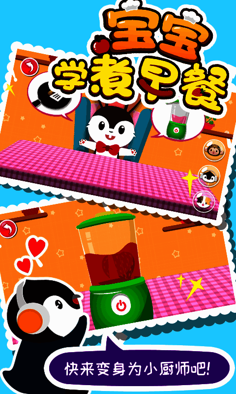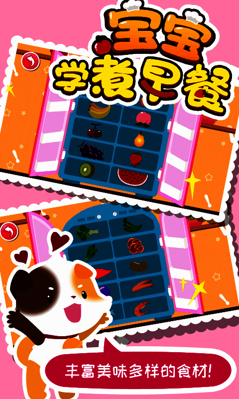 《宝宝学煮早餐》是一款启蒙类的儿童娱乐游戏,玩家能让宝宝自主搭配早餐,让生活更有营养,很锻炼宝宝的思维能力。感兴趣的玩家快来下载体验吧!
