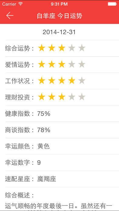 【星座控】涵盖所有星座及测评类小游戏。每日提供有趣星座资讯,有最全的星座运势,包括今日、明日、本周、本月、年运等。专业塔罗牌含爱情、工作等七大牌阵,还有记忆方块、生肖运势等 15 种有趣测评。