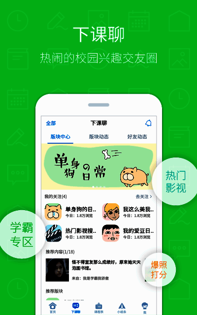 - 拥有五百万海量课程信息,支持校内跨院系随意蹭课。