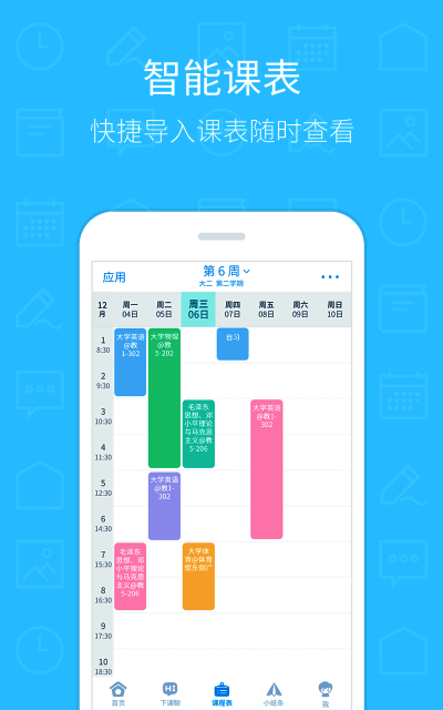 - 与3000所高校教务系统同步对接,可快速将课程表导入手机。
