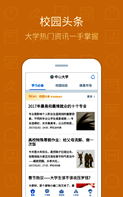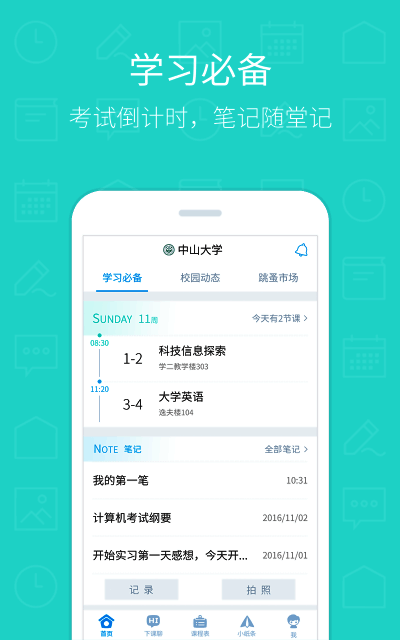 集合成绩查询、CET成绩查询、手绘地图、目标打卡等同学喜爱的实用校园工具。