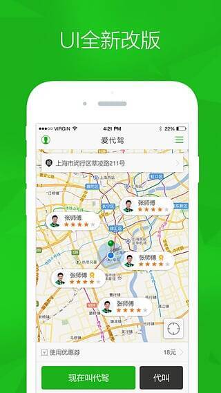 爱代驾app是专业的代驾呼叫平台,您能一键发现附近代驾司机,解决酒后代驾难题,再也不怕交警检查。爱代驾司机经过严格考试筛选,背景简单、驾龄高,0事故、0差评!现在使用爱代驾手机端,分享好友还能享受免单优惠,分享越多优惠越多。