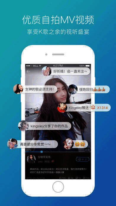 4. 原创分享:自动逐字匹配字幕,支持原唱录制,可分享到新浪、人人等社交平台。