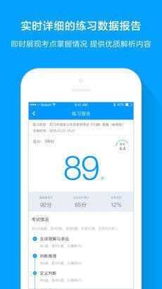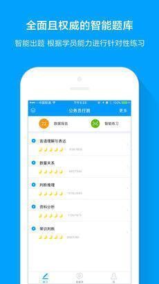 2、个性出题,精准预测:根据目标考试的考点、考频、难度,利用人工智能算法实现一对一智能出题;通过记录用户练习情况,生成能力评估报告,精准预测考分。