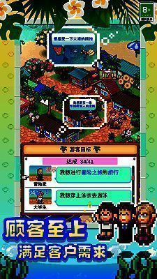 《南国度假岛物语苹果版》拥有经典的像素风格和简单的操作模式。玩家要亲自打造一座岛屿,在岛上建造别墅与娱乐设施,以此吸引游客。游戏中有诸多内容待解锁,且需不断升级来获取更多装饰品。每天都有新任务,丰富挑战体验。玩家能体验新颖玩法,免费收集道具,还可按喜好自由装饰小岛。